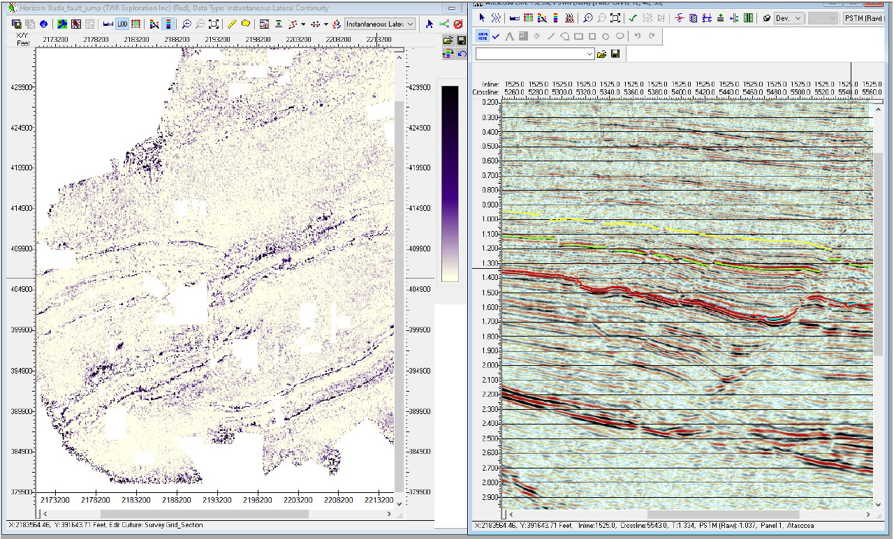 Since 1986, GeoATX Professionals have been utilizing advanced seismic attribute analysis to locate areas of faulting and natural fractures. These techniques were highly successful in the Austin Chalk fractured trend +30 years ago and today we employ these same techniques to identify areas of geologic hazard for horizontal drilling or SWD injection.